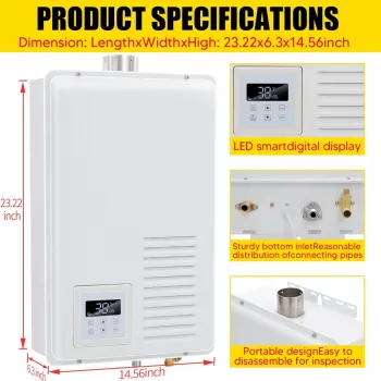 Propane Tankless Water Heater, 7.4 GPM, Indoor Use, Instant Hot Water